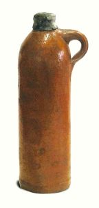 Een steengoed kruikje, puntgaaf, met de kurk en het zegel er nog op en het mineraalwater er nog in. Het is bepaald geen alledaagse vondst. Op de kurk en het zegel staat een merkstempel: APOLLINARIS – BRUNNEN – M – W. Daaronder heeft de verkoper zijn naam gezet: GEORG KREUZBERG / AHRWEILER RHEINPREUSSEN. Ook nu kennen we de naam van Apollinaris nog. Wie wil kan het bronwater van dit merk nog steeds kopen. Georg Kreuzberg is de man die de mineraalwaterbron in 1852 ontdekte en exploiteerde. Uit allerlei resten rond de bron weten we overigens dat de bron in de Romeinse tijd ook al volop in gebruik was.