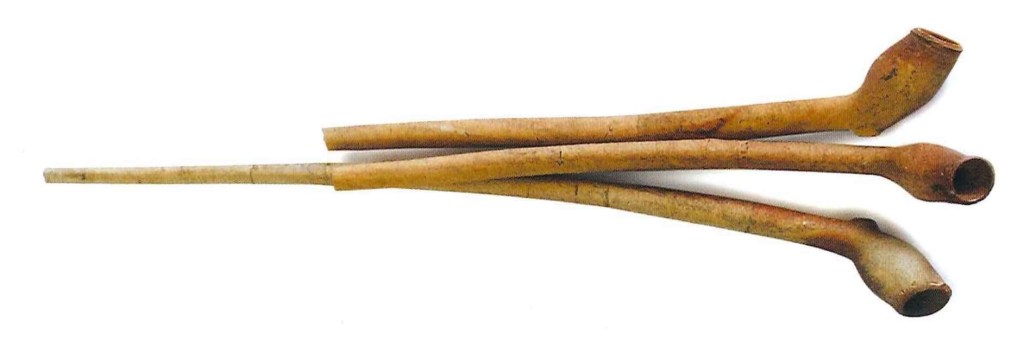 De tien misbaksels vertonen allemaal een roodbruine verkleuring, die het gevolg is van een ongewenste zuurstoftoevoer in de oven tijdens het bakproces. Door te hoge baktemperaturen zijn ze bovendien krom getrokken. De klei vertoont scheurtjes en daar waar er schilfers zijn afgesprongen, zijn verontreinigingen in de vorm van kleine steentjes zichtbaar. De pijpen waren inderdaad niet gerookt. Eén van deze pijpen is compleet en is 23,2 cm lang. De misbaksels zijn waarschijnlijk gemaakt in de periode 1650-1660.