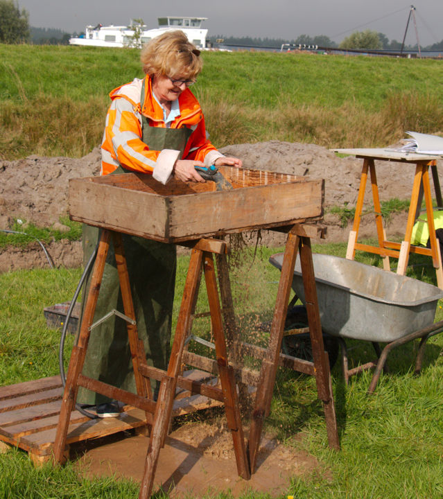 Wilma van den Heuvel is vrijwilliger en is gaandeweg de jaren de glas- en aardewerkspecialist van het Centrum voor Archeologie geworden. Deze materialen determineert en dateert ze zo nauwkeurig mogelijk. Tegenwoordig lukt dat zelfs tot op ongeveer 100 jaar. Ze heeft vaak meegewerkt aan opgravingen. Die aan de Hof vindt ze nog steeds overweldigend. Met de enorme hoeveelheid vondsten daar kon een deel van de geschiedenis van Amersfoort geschreven worden. Van alle vondsten vindt ze die van het skelet met een klein skeletje, m.a.w. een moeder met haar ongeboren baby, nog steeds indrukwekkend. Ze werden gevonden op het Stadhuisplein, daar waar nu de parkeergarage ligt.